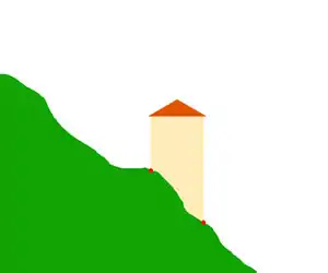Drawing of building outlines of buildings on slope