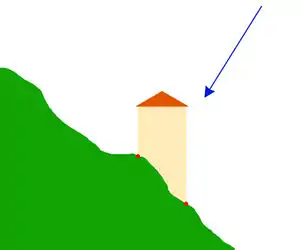 Sloped roofs can be tricky even for an experienced mapper, because the angle of the roof can easily go unnoticed. If that happens, the building shape is drawn as follows: