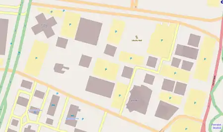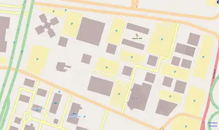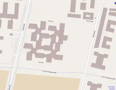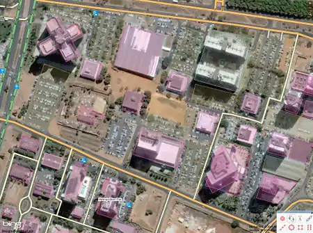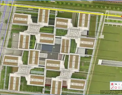- Traced, the L-shaped building in the middle.