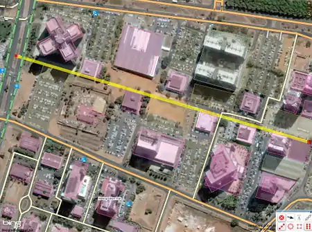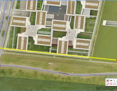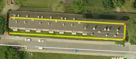- A construction line parallel to the (right image in this example) the outer edge of the building is drawn and placed on the outside edge of building on the aerial photograph: