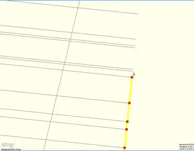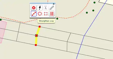 At points where the lines intersect with each other, nodes are added. With the tool "straight way" one line must be straightened after the other ... (a weakness of the potlatch is a slight displacement of the points which we have added to the nodes on the paths)
