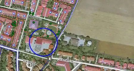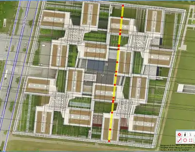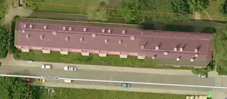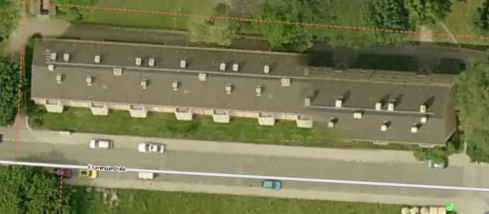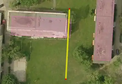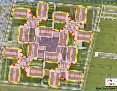 In case of free-standing buildings without reference to the street, the position error is reduced by a shift of half the distance between the lowest and highest position one as the outline for on the aerial photograph visible corner building on the site selected.