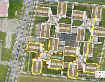 - The original polygon and line construction is deleted, and the new plan polygon shifted to the right place.