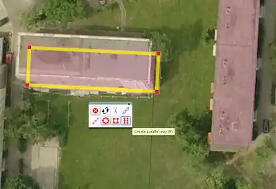 - Due to perspective, the roof is not necessarily the same size as the base, and the polygon may need to be enlarged/shrunk a little. (JOSM's Extrude tool can help here.)