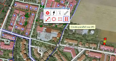 Draw a second construction line parallel to the first (Potlatch2 shortcut "P" )