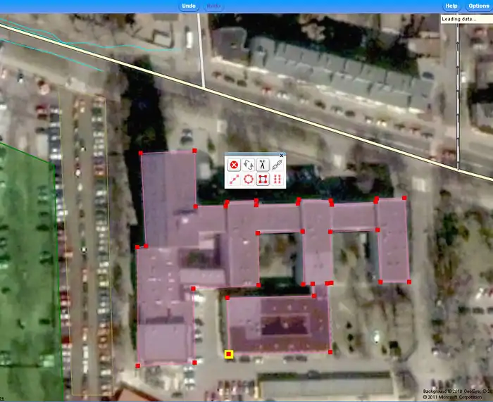 Drawing of building outlines based on low resolution aerial images