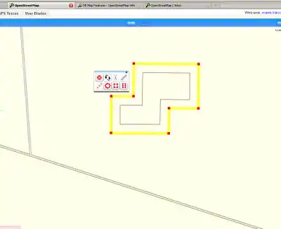 If in the background of OSM there are only roughly detailed aerial photographs, the tracing of the buildings is difficult because the size of the building is nearly the size as the icons of the design tools. This is of the greatest difficulty, if one wants to draw precisely: The graphical representation of the tools and nodes is simply too large for the objects in the small scale. The approach described here deals with this problem in rectangular buildings. The technique is laborious and slow, but gives relatively good results.