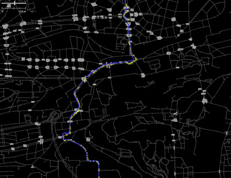 (blue line - GPS log, gray line with yellow squares - matched track)