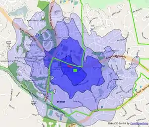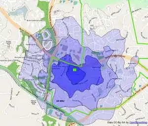 - Isodistance map - shows what areas are within walking/biking distance