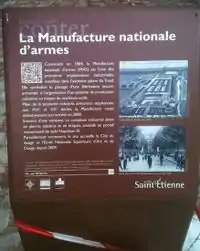 tourism=information information=board board_type=history operator=Ville de Saint-Étienne network=Laissez-vous conter name=La Manufacture nationale d'armes description=Texte + images + QR Code ref=le numéro dans le petit carré blanc en bas à gauche de l'image
