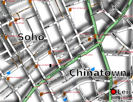 Shadows can help "lift" parts of an image and give it a 3D feel. SVG supports filter effects that let you create drop shadows. Below is a bit of London rendered with a shadow (at about 10am) in the left, and the same area without the shadow on the right, for comparison.