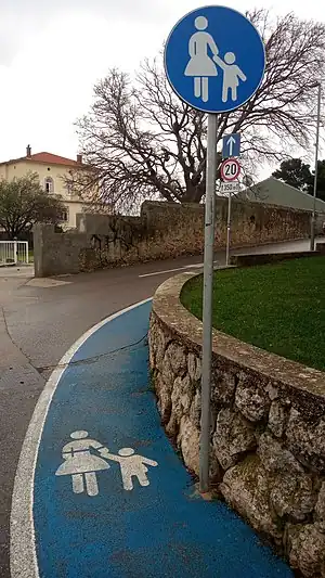 In some cases sidewalk is also a cycleway. In such situations following methods are used