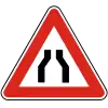 Značka upozorňuje na zúženú vozovku z vyznačenej strany alebo strán.