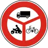B1 | vehicle=no (Pozor: nie access=no pretože chodci majú obyčajne vstup povolený (podľa typu cesty)) |