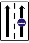 Pravý jazdný pruh z dvoch je vyhradený pre autobus/trolejbus, avšak podľa vyhlášky 9/2009 ho môže použiť aj taxi, preto "psv", nie "bus". Tento pruh je pre vozidlo "psv" len preferenčný (designated), avšak môže ísť aj v inom. Iné vozidlá však nemajú do tohto pruhu povolený vjazd. |