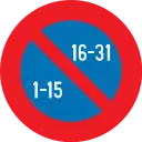 In first half of month: No parking on side with even housenumbers. In second half of month: No parking on side with odd housenumbers. For places where the left side is the side with even housenumbers and the right side is the side with odd housenumbers: |