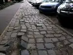 | Az utat alkotó elemek miatt ilyen kategóriák nem léteznek | Teljesen sík felületű kockakövekből készített, kifugázott burkolat | Jó állapotú nagy kockakő / macskakő burkolat, kitöltött fugák nélkül, autóval haladva is érezni a rázkódást | Az egyes elemek elmozdultak / elfordultak, illetve jelentős síkbeli eltérések vannak köztük | Teljesen tönkrement térkő, az elemek nagy számban hiányoznak / kifordultak, a köznyelvben "járhatatlannak" nevezik | Az ilyen állapotú utak nehezen elképzelhetők | ||||