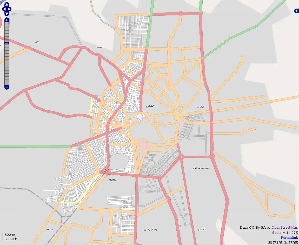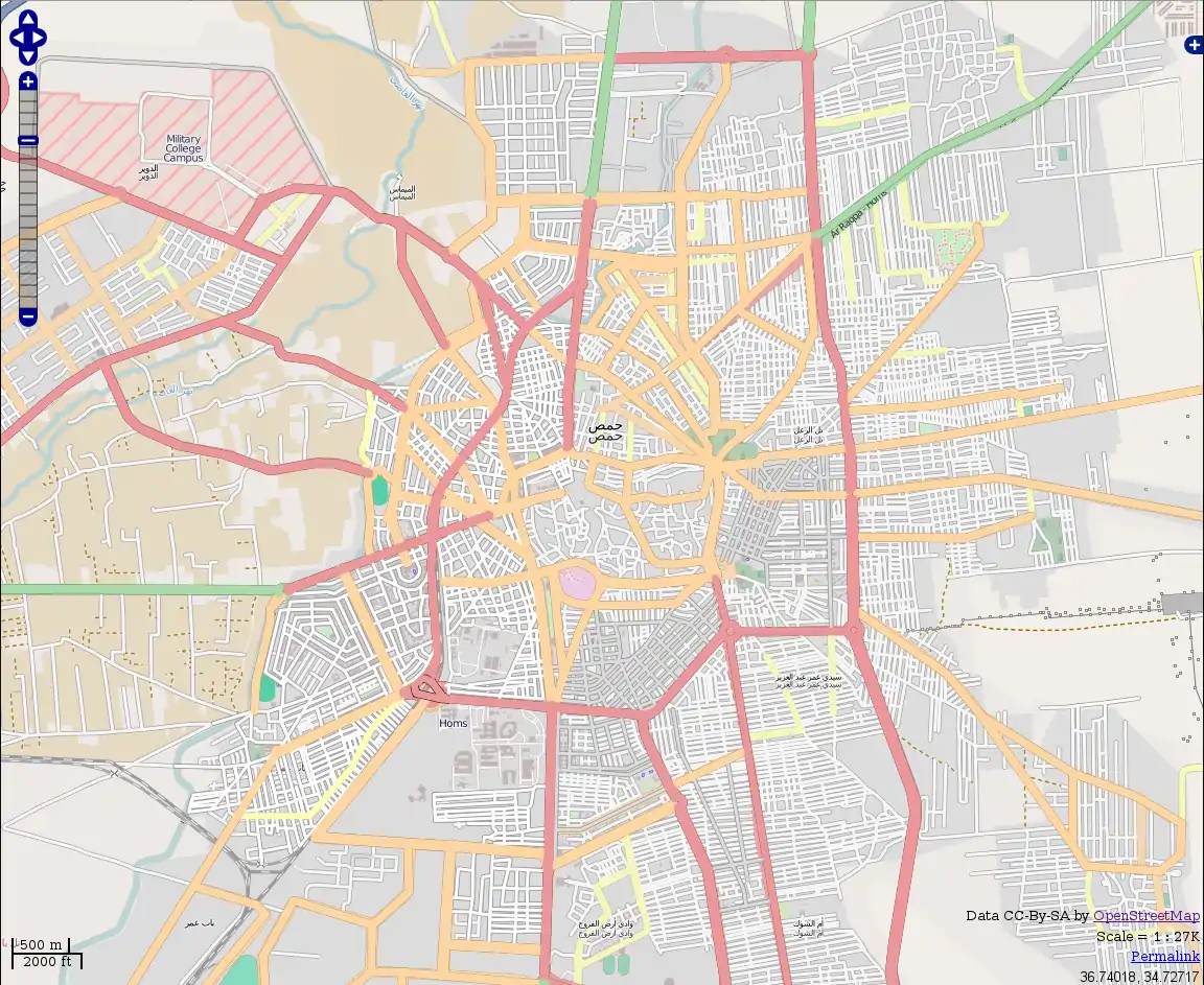 Impressive tracing occurred over Homs after high resolution Bing imagery of the area became available. Compare this snapshot taken on Saturday 2011-02-11, when the mobilization was just starting (with the "roads" in grey south west of the center):