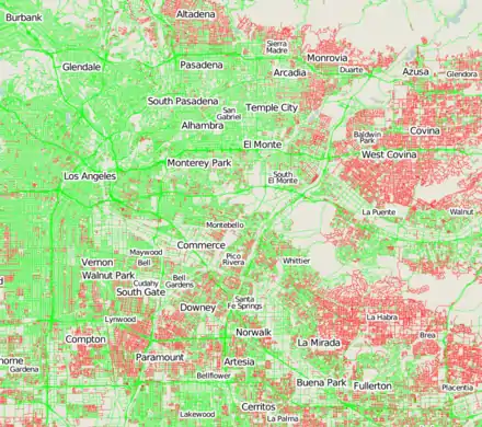 - Orange (or red) lines are minor (or major) roads which have not been edited since the TIGER import, and so are still not reviewed.