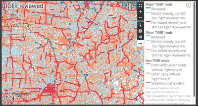 In December 2011, ITO World added a regularly updated TIGER Edited Map layer to ITO Map, and this superseded the MapQuest one which wasn't being updated. This version also gave a break down by minor and major roads and indicated whether the map has been edited without the reviewed tag being removed.