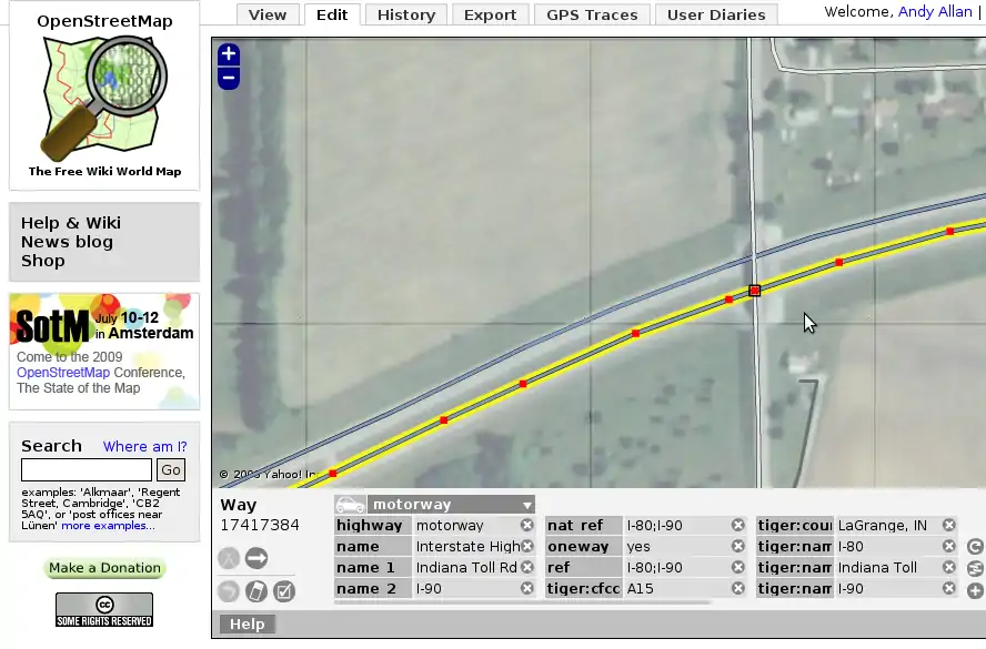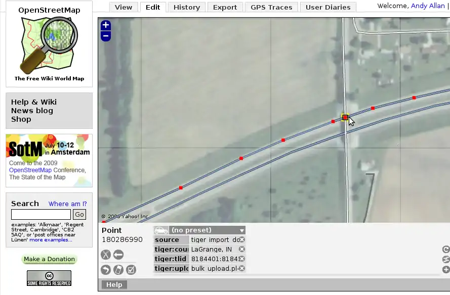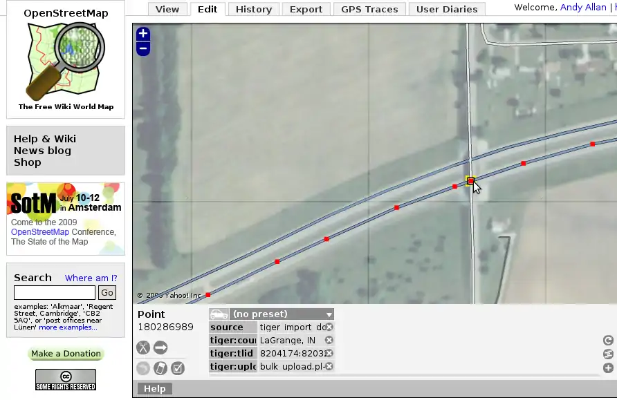 This is a short how-to on fixing overconnectedness in TIGER data. Screenshots show the old Potlatch 1 editor, but similar actions can be carried out in other editors