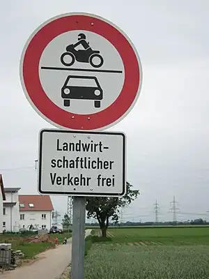 | Restricted to usage of the road for agricultural purposes (for any type of transportation mode) |