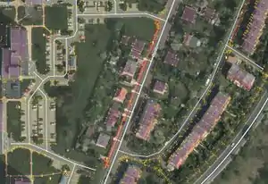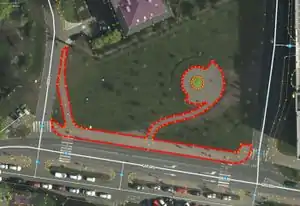 | Traffic calming paving on a street edge (This element should be treaten as kind of a traffic calming area, not footway) |