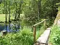 barrier=fence+fence_type=railing is a system designed to keep people straying into dangerous or off-limits areas.