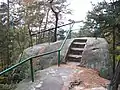 barrier=handrail - a rail that is designed to be grasped by the hand so as to provide stability or support. Usually found alongside steps.