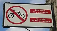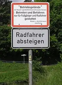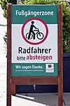 Sign on the left is forbidding entrance with a bicycle - not only riding on a bicycle
