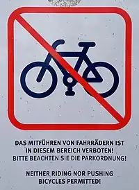 Note that carrying or pushing bicycles may be still accepted[2][3].