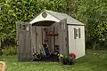 shed is a simple, single-storey structure that is used for storage, hobbies, or as a workshop. They can often be found in a back garden, on an allotment, or at site with groundskeeping.