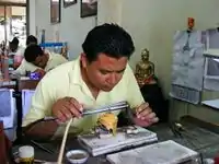 | The workplace of a person who forges things out of gold, especially jewelry. |