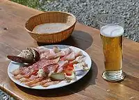 | A small cold snack consisting of sausage, cheese and bread. Served mainly at alpine huts. |