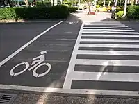 Use cycleway=crossing together with a highway=* tag to indicate a place where cyclists cross a road. This tag is only to be used in countries where cycle crossings have a legal status (for instance having right of way when an ordinary cycleway wouldn’t).