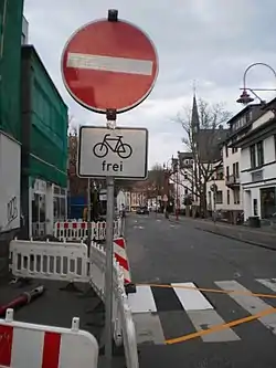 | One-way street without own bike path, which is open for cyclists in the opposite direction. |