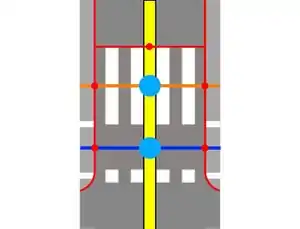 ![]() Pedestrian crossing controlled by traffic signals |