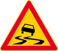 The tables below show what slippery road hazard signage looks like in various countries. Note that some countries use the same sign symbology for hazard=ice, but with an additional plate to indicate ice and/or snow.