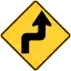 A reverse turn hazard is a section of road that turns sharply two times in opposite directions, presenting a hazard to motorists. Turns present a hazard of obscured visibility of oncoming traffic as well as a short turning radius. This tagging is applied to roads that are signed for dangerous turns and should not be applied indiscriminately to roads merely because they have a turn.