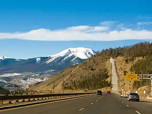 | Emergency lane beside long descending slopes for trucks to stop after brake failure. |