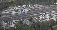 | Place where drivers can leave a road to refuel, rest, or take refreshments. |