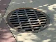 A manhole giving access to a drain (e.g. for removing excess rainfall/water).