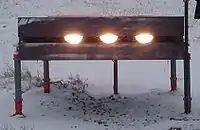 The Visual Approach Slope Indicator (VASI) is a system of lights on the side of an airport runway threshold that provides visual descent guidance information during approach. These lights may be visible from up to 8 kilometers (5.0 mi) during the day and up to 32 kilometers (20 mi) or more at night.