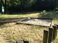 The tag playground=sandpit describes a sandpit (container or shallow depression filled with soft sand). It should be tagged to separate objects within the area of a playground leisure=playground.