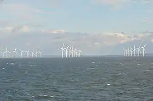 Burbo Bank is an offshore wind farm, which is tagged as an area to allow the appropriate Seamark tags to be used. The individual wind turbines are tagged with power=generator within this area. | 327949356 |