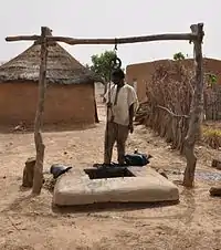 water wells (man_made=water_well) where water is drawn without a pump. Typically dug wells where water is drawn using buckets that are pulled by hand.