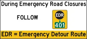 An emergency detour route (EDR) sign on Ontario Highway 401.