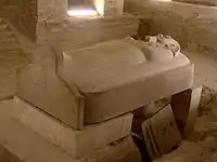 sarcophagus is a box-like funeral receptacle for a corpse, most commonly carved in stone, and usually displayed above ground, though it may also be buried.