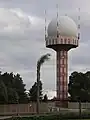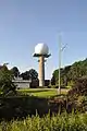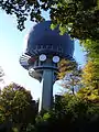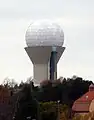 The 'communication tower' is a dome (or 'golf-ball') construction, with antenna elements concealed from view by a radome