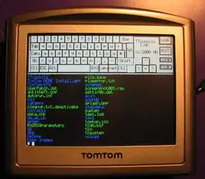 TomTom is a Dutch multinational developer and creator of location technology and consumer electronics. TomTom Devices run Linux, so they have best requisites for being used together with OSM. It is possible to port Linux software to run on these tiny little devices. They have touchscreen, framebuffer-driven full coloured screens, USB, bluetooth, a very sensitive and accurate GPS receiver (nmea driver), Serial (RS232), SDCARD slot, 32,64 MBytes RAM, 512MB up to 2 GB FLASH HD. 500 MHz ARM processor. The battery lasts for about 3 hours. The Navigation software is proprietary closed software and the map file format is unknown. At the moment it is not possible to use OSM data with the original software. Navit has been ported to the TomTom devices, gosmore has not yet been ported. There is a good Tracklogger available to collect tracks, which can be uploaded to OSM. Also games, a media player, altimeter, planetarium etc. have already been ported.